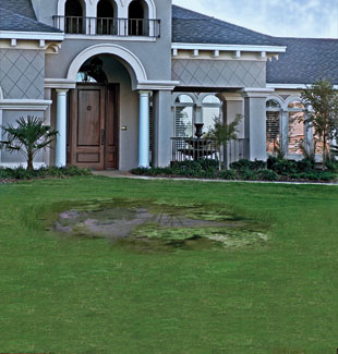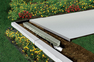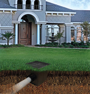 This square catch basin and other surface drainage devices can prevent ponding and damage to turf, hardscapes and structures. These drainage devices can often be located so as not to interfere with the site plan.