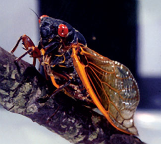 The life cycle of cicadas is a mystery to entomologists. Periodical cicadas mature very slowly and somehow emerge within a few nights of each other and number in the millions. Unlike their cousins that appear every summer as large, black insects with greenish wing veins, these cicadas are much smaller.