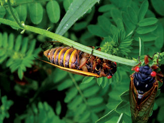 Like clockwork, the periodical cicada (Magicicada genus) is making its appearance this summer. Requiring a great deal of time in the nymph stage, the cicadas have been developing underground for nearly two decades, and like a sailor on weekend-leave, they are out in droves, up all night, and more than just a little loud. However, unlike most insects it won?EUR??,,????'?????<???EUR?t be seen again for another 17 years.
