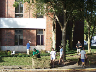 Among such items were approximately 20 UF students from the Landscape Nursery Management Program, Golf and Sportsturf Management Program, and Environmental Horticulture Club. Along with the assistance of the Austin Outdoor employees, students were digging in to re-landscape Fifield Hall, which is the Environmental Horticulture Department at the university.