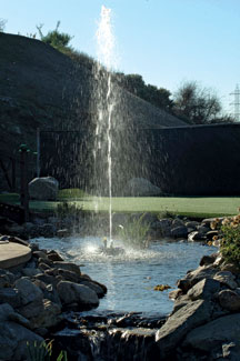 The answer may be adding a fountain to the landscape. Fountains are efficient aerators, drawing water from the pond and spraying it into the air, which both cools and adds oxygen to the water. When the water returns to the pond, it is now cooler and sinks to the bottom of the pond where the oxygen level is typically the lowest. Not only do you get the wonderful benefit of the fountain display together with the soothing sound of the water, you get the bonus of improving the oxygen level of the pond.