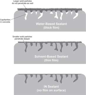 A final and increasingly important differentiating characteristic of various sealers is whether they?EUR??,,????'???re solvent based or water based. Solvents have long been the preferred delivery vehicle for protective coatings due to their deep penetration, excellent ability to achieve saturation of the sealed material and their forgiving nature in the event repairs are required. As environmental concerns continue to mount however, governmental restrictions on solvents continue to tighten. New and stricter US EPA federal regulations for VOC (Volatile Organic Compounds) emissions are expected for 2008 that will render a number of current solvent based sealants non-compliant. Thorough discussion of VOCs is beyond the scope of this article, but suffice it to say that sealant manufacturers have been busy working on low VOC products to continue to meet the growing demand for hardscape surface protection.