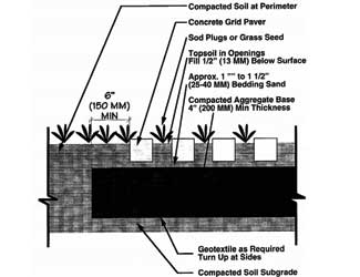 In order to support grass or plant growth, the voids must be filled flush to 2 inches to 3 inches above their surface with suitable topsoil or mixture of soil and fertilizer. Then the openings are seeded, sprigged or plugged.