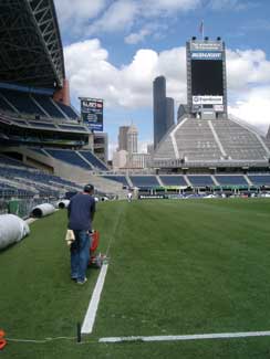 A great deal of time and effort goes into preparing a sports field, especially painting lines and logos. The proper tools, paint and products are vital to a professional-looking product.