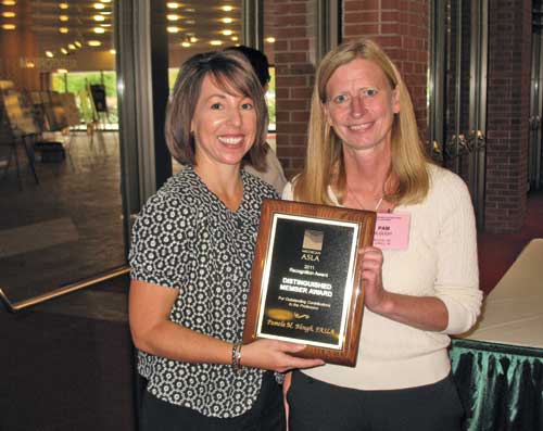 The chapter recognized recipients of its 2011 President’s Awards and Chapter Design Awards. The President’s Emerging Professional of the Year award honors a landscape designer/landscape architect in the first 10 years of their career for significant contributions or significant works of design. This year’s Emerging Professional of the Year is Joane Slusky, Associate ASLA.