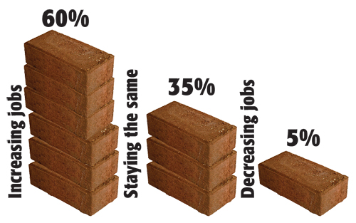 Survey respondents see the hardscape part of their business increasing relative to other services they offer, with 60 percent seeing increasing hardscape work in their future, while only 5 percent expect a decrease.