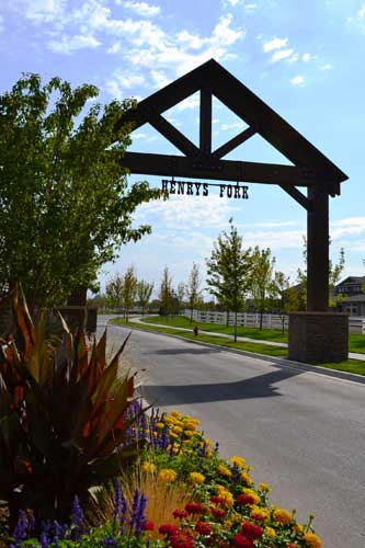 Since 2011, Breckon Land Design has been involved in design and planning the Henry's Fork development, a 95-acre multiphase subdivision. The design includes a neighborhood park, landscape for the community pool and clubhouse area, as well as the trails and open spaces of this development. The scope of work also includes design of an entry monument that features an overhead structure of timber and steel, with footings clad in locally sourced Oakley Stone.
