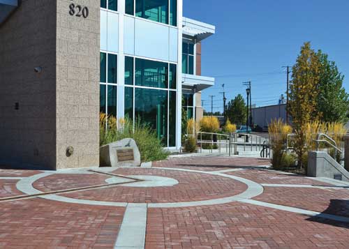 This LEED-certified municipal project in downtown Nampa encompasses site improvements to an entire city block. Commissioned to design the main plaza and streetscape improvements, Brecken Land Design also provided detailing for all site amenities. This includes seat walls, accessible pedestrian ramps, handrails, columns, steps, concrete unit pavers, tree grates and site furnishings, stormwater swales, and landscape and irrigation improvements.