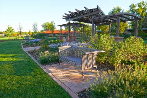 DHM Design worked closely with the Mercy Foundation to design the landscape for the Mercy Labyrinth Garden adjacent to the hospital at Three Springs. The goal was to create a contemplative, peaceful setting to connect patients and their families to nature, and support healing. The garden features a central labyrinth, a fountain, sculptures, shade structure, stone benches, rose and herb gardens and flowerbeds.