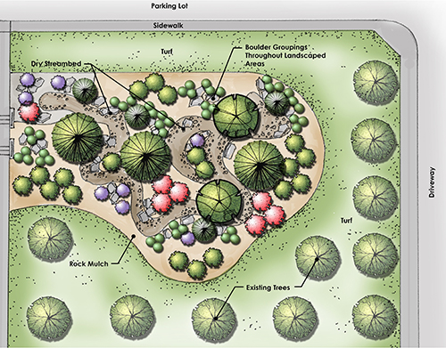 The Bureau of Reclamation's Provo Area office wanted to demonstrate water conservation to the public by replacing landscaping with drought tolerant, native plantings. HDR's landscape architects designed the new landscaping to reduce water consumption, use the existing irrigation system, use native and low maintenance plants, and delineate seven separate planting zones. The new landscaping shows the public that this type of landscaping can be aesthetically pleasing, sustainable and low maintenance.