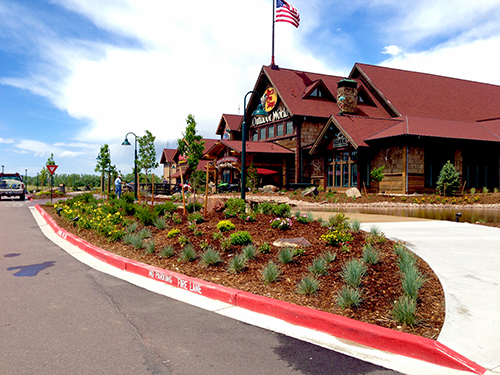 Natural Design Solutions provided site, water feature, landscape and irrigation design for this 120,000 square foot store for sporting enthusiasts. A variety of xeric and native plants varieties were combined to provide this showcase retail center with curb appeal and regional character.