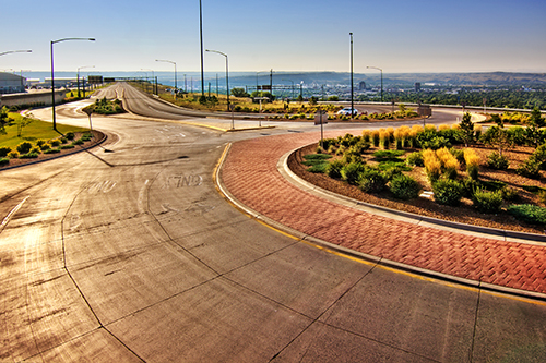 Peaks to Plains Design lead a design team for the construction of two ADA-compliant walkways connecting two parking areas to the Rimrock Auto Arena, one of three concurrent construction projects for the firm on the Metra Park campus. Funded with transportation enhancement dollars, the upper pedestrian walkway features a curved switchback that transverses a 32-foot elevation difference. Curved cast-in-place concrete walls and stacked sandstone boulder walls accommodate the grade breaks, while providing aesthetic contrast. Bollard and wall lighting was incorporated into the upper walkway. The contractor was challenged by tight working spaces while hammer-drilling sandstone bedrock. Handrails and guardrails provide safety and pedestrian access control. The lower walk is a simple "S" curve with multiple ramps. The firm did the project feasibility study, the recommendation of the project budget, environmental documentation, coordination with consultants and contractors and working with MetraPark staff to continue park operations during construction. The firm was also involved with the Arena reconstruction project, which required repair of the grounds from a June 2010 tornado, and provided input to the Bench Connector road project. The arena construction project won ENR's "Best Projects Award" in 2012.