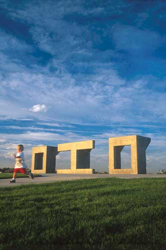Closure of the 1,900-acre Lowry Air Force Base afforded Denver and Aurora the opportunity to redevelop 230 acres into three parks, with a broad range of recreational and open spaces. Wenk Associates was responsible for master planning, and final design for the phased build-out of the community's primary park and open spaces. The site is designed around a restored and daylighted creek, an integral part of regional stormwater flood detention, conveyance and water quality treatment. The Great Lawn is a community park reminiscent of many of Denver's City Beautiful-era parks. Half of the park is native, nonirrigated landscape, with natural areas, wetlands and prairie landscapes on the perimeter.