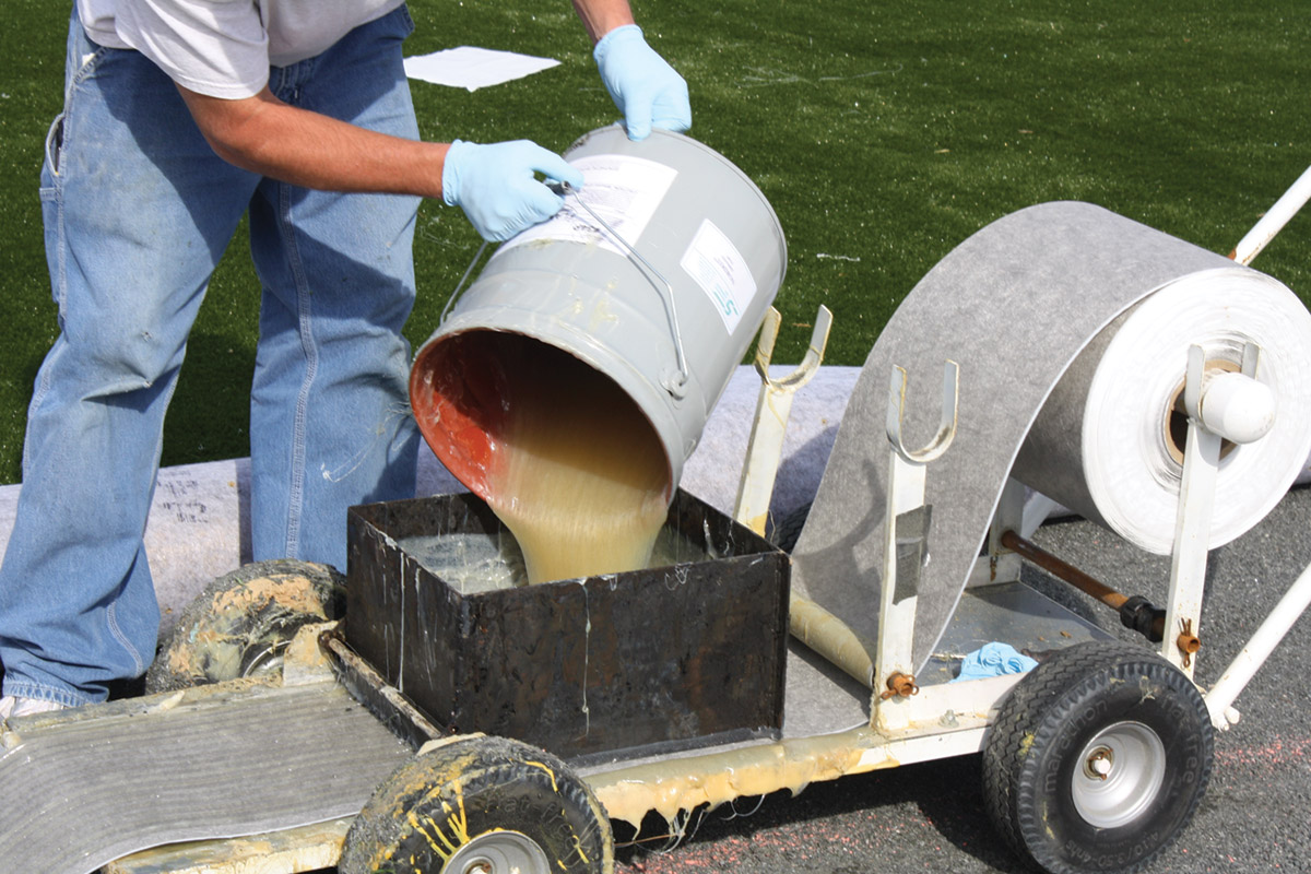 Why is adhesive selection critical for a successful synthetic turf landscape installation? A synthetic turf installation using the best turf, pad and base is of little value if the adhesive holding them down fails. The adhesive is usually the lowest cost component of an installation, yet it is extremely important to its success and longevity. How long have you been developing adhesives for synthetic turf landscaping, athletic fields, playgrounds, etc.? Synthetic Surfaces Inc. has been developing adhesives for over 46 years.