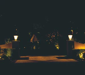 One important thing in any lighting design is hiding the fixtures and control boxes that make the system work. Most of the fixtures at this residence are covered up with growth.