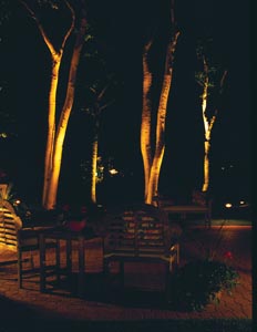 "If you are in the sitting area, you will notice that the birch tree is lit at one level with a lamp called a 44-14 or a 44-06 which is a low level lamp light," Fenton said. "As you look farther back we upped the lamp to the next wattage, so it would cover the tree as we went further back so the sitting area would have a flow going out."