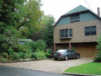 The tree-shaded site in Leonia, N.J. is less than a dozen miles from the center of New York City. A 2004 redesign added a driveway of tumbled pavers and a recreational center to the formerly overgrown backyard.