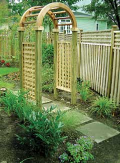 Between the home and the planting bed the crew placed a small deck big enough to hold a propane grill. The barbeque could have gone on the patio, but that would have used valuable and limited space.