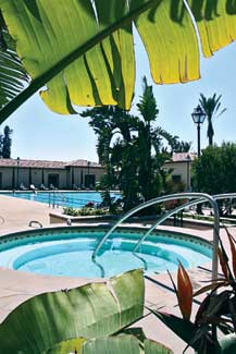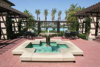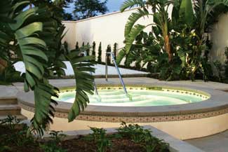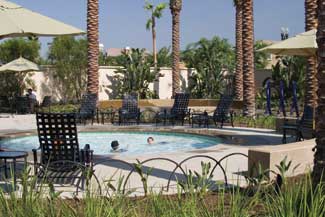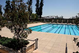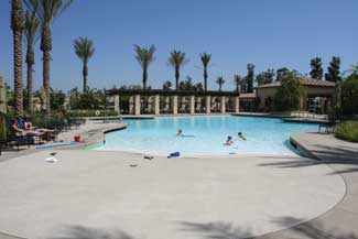 The other pools within the recreation center were designed for different aquatic needs. An ?EUR??,,????'?????<????????adult resort?EUR??,,????'?????<???????? pool presents a more subdued, quieter atmosphere (fewer fussing kids). A cabana for shaded seating and a spa are appreciated amenities. Immediately adjacent to the pool is a barbeque area, a buffer between the pool and the sand volleyball court. The third pool is a more serious design?EUR??,,????'?????<???????????an eight-lane junior Olympic pool, providing facilities for HOA swim meets and water polo games. Terraced seating is provided for spectators.