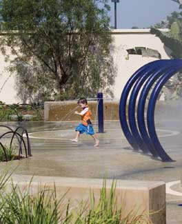 Landscaped walks and courtyards create a cohesive framework for the park, providing connections between facilities and parking. The pools and water features are designed with a diversity of aquatic experience in mind. The central pool, or ?EUR??,,????'?????<????????lagoon,?EUR??,,????'?????<???????? primarily serves families with youngins. Because of the city?EUR??,,????'?????<????????????EUR??,,??s youth, only 12.7 percent of Irvine?EUR??,,????'?????<????????????EUR??,,??s population was over-55 in 1990. By 2020, 28 percent will be over 55. A ?EUR??,,????'?????<????????zero-entry?EUR??,,????'?????<???????? beach entry provides easy, gradual access. Shallow areas are perfect for the younger set, and the deeper areas give the older kids and adults a chance to play Jacque Cousteau.