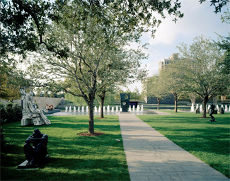 Driven by a love affair with art that has lasted over 50 years, Ray and Patsy Nasher have actualized notable achievements, including amassing one of the finest collections of modern sculpture in the world with over 300 pieces, including virtually all the great masters. But Ray Nasher’s recent vision–to vitalize the growing Dallas downtown art district by creating an enduring sculpture garden and gallery worthy to frame a rotating display of their collection of three-dimensional art by masters like Picasso, Moore and Matisse–required the talented collaboration of two additional artists, Italian architect, Renzo Piano and landscape architect, Peter Walker. The goal? To create a quiet retreat from the metropolitan hustle-bustle of the city, where fast-paced urban travelers would slow down and, not just view, but contemplate art.