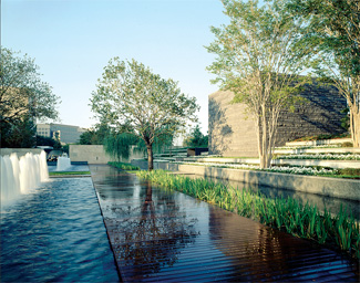 All the ancillary structures like fountains, steps or benches have been designed as architectonic-as a piece of architecture rather than a piece of sculpture-keeping them humbly within in the proper hierarchy of elements. In these ways, says Walker, designing outdoor galleries is very similar to designing an interior gallery space-by using a purposeful blend of subordinating structures.