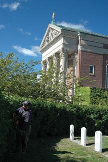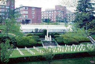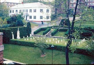 Now, a cemetery probably isn?EUR??,,????'???t what most college students expect to see on their way to class. But in the beginning when the college had only one building that housed the Jesuits, students, classrooms, dining hall, gym, and kitchen, the cemetery was located at the rear of the campus and was surrounded by farms and an Indian reservation. It wasn?EUR??,,????'???t until a fire broke out at Holy Cross that additional buildings were constructed around the cemetery, transforming it into the central point of the college grounds. Being a central figure of the campus means that the crew must keep a constant vigil of the cemetery?EUR??,,????'???s appearance.