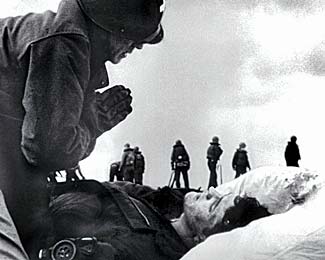 During an attack on the ship by the Japanese during offensive operations near Kobe, Japan on March 19, 1945, Father O?EUR??,,????'???Callahan tended to the dead, read last rites, comforted the injured, and led damage control and ammunition jettisoning parties. After the attack, the commanding officer of the ship called O?EUR??,,????'???Callahan, ?EUR??,,????'??The bravest man I ever saw.?EUR??,,????'??
