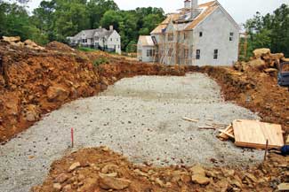 The most challenging aspect of the construction was the concrete block retaining walls. The contractor had to shoot the outside wall of the trough to a level two feet above the shallow section of the pool floor, then tie the walls into the pool structure.