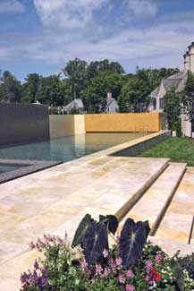 The design challenge for messieurs Fleming and Tisherman was to create a contemporary-themed water feature, but with a subtle design touch that would not overpower the traditional home architecture.
