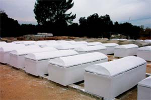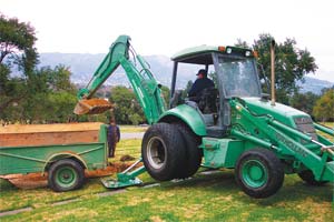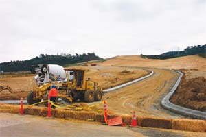 We next drive by the new grading project, land being prepared for sod. The cemetery just keeps expanding. A construction crew is on hand to pour cement for the new road. The water lines are also about to go in.