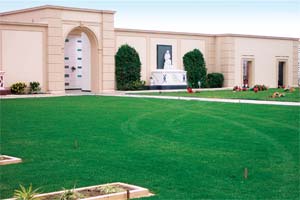We walk the terraced property, called gardens or companion area (vaults are stacked here). The garden lots offer the privacy of low walls and permanent plantings and statuary.