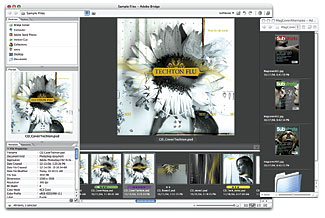 The file browser for CS2 has been upgraded and provides a tool to ease workflow. The browser displays a picture or graphic with its corresponding meta-data in a fully-customizable format. The film strip view, in the example of Adobe Bridge, is one of the ways to view images. Along with the traditional thumbnail view, there is a details view and a version and alternates view. This new browser works with all the programs in the Creative Suite.