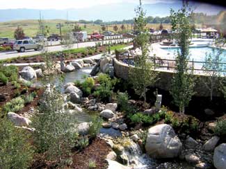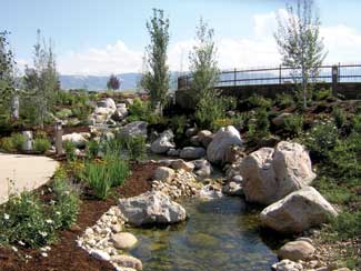 To compliment the water feature, ?EUR??,,????'?????<????????we used a wide palate of perennials native to this part of Wyoming,?EUR??,,????'?????<???????? said Thuesen. A number of woody shrubs can be found throughout while aspens were the primary trees planted. The woody plant materials worked in key locations to add some greenery to the landscape.