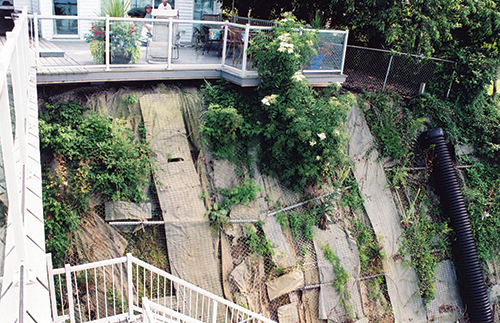 ''We didn't cover the rest of the cliff. We tried to get vegetation to grow but we couldn't get anything to sustain,'' says Norton. Still looking for a solution, Norton's father wanted to use a segmental retaining wall to cover the rest of the bluff face. So Norton contacted Andrassy again.