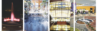 In South Africa there is a new urban landscape that draws from the rich traditions, cultural history and environmental character of a sub-tropical garden region, the province of KwaZulu-Natal. The name of the province means home of the people, and indeed, there are almost three million people living within a half-hour drive of this ambitious urban development north of Durban. The Umhlanga Ridge New Town Centre, a carefully planned, eco-friendly environment has completed its first phase with the largest shopping center in Southern Africa, called Gateway Theatre of Shopping. Eventually, the pedestrian friendly development will be a dynamic mixed-use urban centre built on the site of what once was sugar cane fields, using indigenous trees, shrubs and plants to embellish the urban lifestyle. Gateway Shopping Centre incorporates many of the world?EUR??,,????'???s firsts but is certainly unique in design; a major shopping and entertainment place that will become the heart of an entire new town! Covering more than 120,000 square meters, the complex has beautifully accomplished what developers Old Mutual Properties, had hoped for. Already, since its opening in September of 2001, Gateway has become an exciting destination for both the local community, as well as international clientele who frequent this vacation region on the Indian Ocean. No wonder! The center boasts an incredible array of over 375 shops, restaurants and entertainment venues and three multipurpose water features with distinct personalities. The water features of Gateway are incredibly important element of the overall environment and visitor experience. Visually and sensually, they connect a diversity of shops, venues and people while helping to script a pleasant experience that mirrors the goals of the project. The goal was to create an overall retail shopping experience to serve local community that also had an international feel and draw. The theme was to be South African, but the client and designers were sensitive about the cultural diversity and so they didn?EUR??,,????'???t want to depend on historical or typically ?EUR??,,????'??African?EUR??,,????'??? icons to define the architectural form. The design achieves this by looking to rich colors, texture and cultural history. The linear nature of Gateway Shopping Centre reflects the surrounding landscape which consists of layers of overlapping horizontal elements. One of design firm RTKL?EUR??,,????'???s associates, Ken Maynard, was lead architect on the Gateway project. Based in Baltimore, he led a team of 12 architects from RTKL?EUR??,,????'???s retail/entertainment architectural studio as well as its ID8 group, an environmental, graphics and theming team. ?EUR??,,????'??Water features were an integral part of the vision right from beginning,?EUR??,,????'?? Maynard said. ?EUR??,,????'??Water is a very important element at Gateway, because it reflects as well as creates nature, sound and entertainment. This is a community big on surfing and nature. Water helped capture that essence as well as bring the impact and theme out beyond the doors of the building.?EUR??,,????'?? ?EUR??,,????'??The water features mimic their surroundings using vibrant colors and natural materials, but they serve as major attractions, as well,?EUR??,,????'?? said Michael Denman, director of overseas operations for Crystal Fountains. There are two exterior features; one is the Palm Court fountain at main entrance to mall. Located in a courtyard, surrounded by outdoor caf????(C)s, the feature comprises seven decorative urns pouring water into a pool. The feature creates a refreshing, cooling atmosphere, with soothing background water sounds produced by the 5-meter fall. "The design challenges with the Palm Court feature were how to pour out the water, control the noise and contain the splashing water in the pools," said Denman. "We suppressed the landing impact by directing the flow of falling water onto a cushion of more water, this also reduced the noise to the perfect level." To create the pouring effect, the spouts were custom designed. The water falls onto a natural rock-scape, which seemingly flows into a lily pond, like a Roman bath. Overhanging walkway, or flat bridge, gives the feel that water ?EUR??,,????'??disappears?EUR??,,????'??? underneath into the pond. However, in reality, there could be no physical link, since lilies require little or no turbulence. The horticultural expertise of Landscape Architect Gary Bartsch, of Gary Bartsch International was required to solve another mystery. "We wanted the water in the Palm Court fountain and lily pond to have the same look," Bartsch said. "We wondered if the lilies could be treated by low levels of bromine." At the start of six to eight months?EUR??,,????'??? research on optimum water temperature and bromination, it was discovered that the lilies, which are standing in containers with their roots in soil, were having difficulty flowering. "We corrected that with fertilizer and organic matter and now they grow and produce flowers extremely well ?EUR??,,????'??? almost too well," said Bartsch, whose work to strike a happy balance between chlorine and plants has helped create a relaxing, peaceful atmosphere in the Palm Court of Gateway. With several caf????(C)?EUR??,,????'???s around it, and escalators on either side, the Palm Court feature is a major destination and also serves to draw people up to the source of the water; the urns are actually on the first retail level. The other exterior water feature attraction is the first of it?EUR??,,????'???s kind in South Africa, according to Mike Rodel, General Manager of Gateway. Old Mutual Properties desired a Las Vegas-style show feature - water ?EUR??,,????'??magic?EUR??,,????'??? that would be a strong attraction for people visiting the shopping center. Of course it also needed to fit with the rest of the natural landscape/subtropical theme. Following discussions with the client Crystal Fountains?EUR