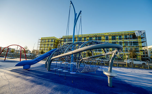 Alameda Point is a $1 billion waterfront development on the former Alameda Naval Air Station. The playground is situated in the middle of 800 residential units, commercial and retail spaces, 15 acres of parks, and new transit facilities, including a ferry terminal to get commuters to or from San Francisco in 20 minutes. Working with the developer, Trammel Crow Residential, the team designed this intricate, marine-themed playground with inspiration from Allie the Wayward Whale, who was first spotted by the Alameda shoreline in the summer of 2019. After spending several weeks in these shallow, protected waters and gaining attention from locals and tourists alike, Allie seemed to recover from her poor health and embarked on her journey back into the open sea. This playground will ensure Allie's legendary legacy remains in the place she - for a brief moment in time - called home. To have your project featured in LASN or on LandscapeArchitect.com please email dherbold@landscapearchitect.com For more information about submitting a project, go to: https://landscapearchitect.com/research/editorial/editorial-submissions.php