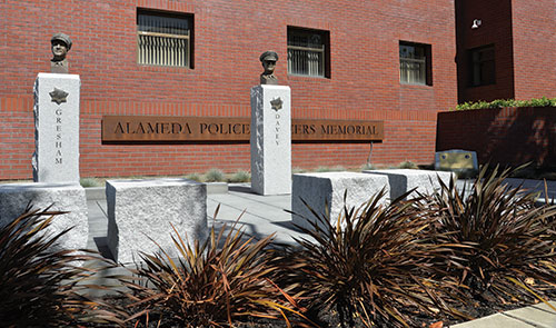 Police take their lives in their hands when on duty. The Alameda Police Officer's Association, with the support of the city, constructed a memorial in front of the Police Administration Building on Santa Clara Avenue in honor of officers Deward Burton Gresham and Robert James Davey, Jr.