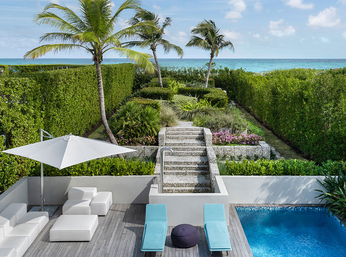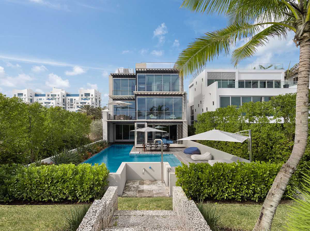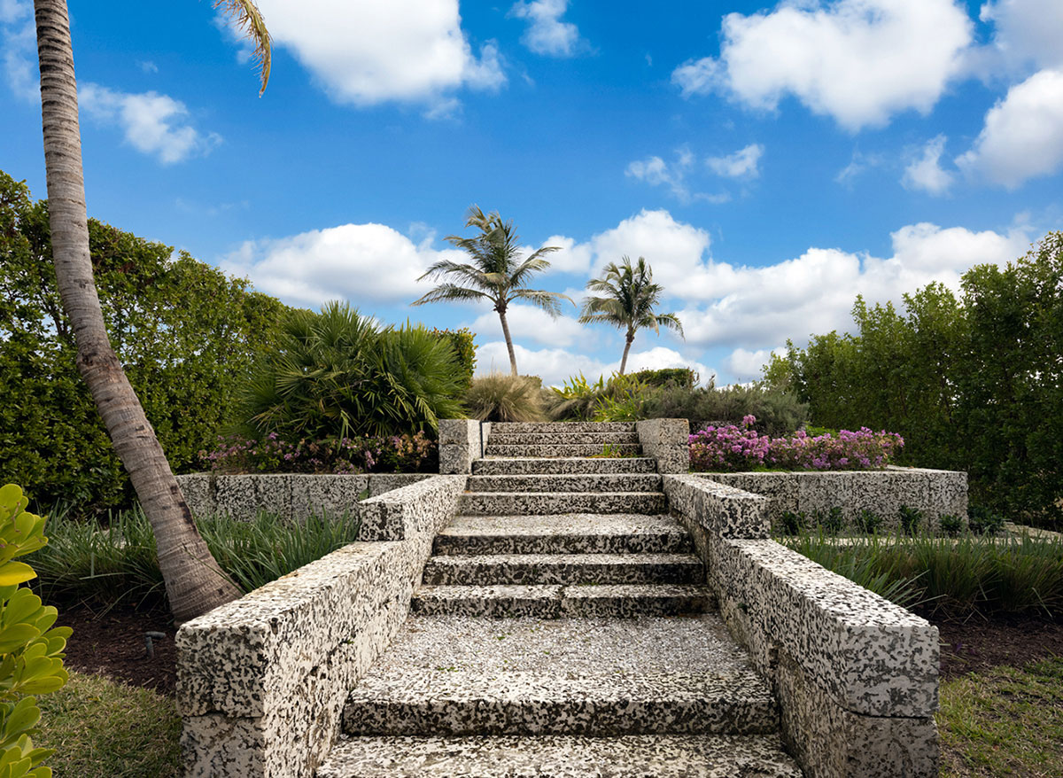 The upcoming Hardscape Issue of Landscape Architect and Specifier News saw many firms submit their projects for feature consideration. This project was not chosen for a Feature in the issue, but we at LandscapeArchitect.com thought the project deserved to be showcased online . . . The Altos Chic Residence in Miami, FL was design by Landscape Architect Orlando Comas. The project's most significant challenges were design code requirements to be met. (1) Florida's Department of Environmental Protection (DEP) regulation required that all sand from excavation of piles, pile caps, spa, and pool must remain within the site. (2) meet City of Miami Beach building code required all construction east of the Coastal Construction Line be break-away. Break-away is a wall or other material used as retention walls that is not part of the structural support of the building and is intended to collapse under specific lateral loading forces without causing damage to the building or its foundation system to which they might be carried by floodwaters. (3) City code requirement to keep all runoff waters within the site.