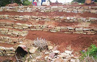 ?EUR??,,????'??We then backfilled the terraced planting beds behind each wall with 12 yards of friable topsoil. The homeowner chose to plant her own selection of plant material. ?EUR??,,????'??We backfilled behind the new walls with topsoil?EUR??,,????'???I had 12 yards delivered,?EUR??,,????'?? says Rice. ?EUR??,,????'??We had to hand carry the soil down the hill in buckets as well.