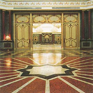 Elaborate stone floors, of course, have been made for many centuries. However, working with chisels, grinders and saws, technical limitations required most shapes to be straight lines or gentle curves. If detailed inlays were attempted, the material was very thin and the resulting pieces not durable. The modern waterjet can accomplish stone fabrication detail in minutes, which could take days or weeks by hand. Complex installations are done in weeks, which would take decades by manual methods, and waterjet can fabricate inside curves and opening details in thick durable pieces, which could never be achieved by manual methods.