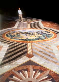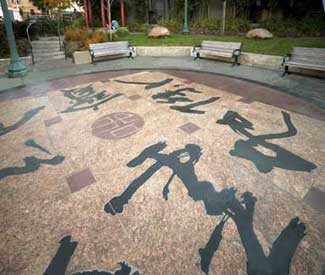 As ever, new technical methods give rise to new forms of artistry. Freed from many of the constraints of the fabrication of architectural materials, designers, and landscape architects have embraced the possibilities of waterjet fabrication. Harri Aalto is a sculptor and fine artist as well as founder of Creative Edge Master Shop. CEMS was among the first to recognize the potential of waterjet applied to decorative materials. Writing in 1988, Aalto said, “Waterjet is being used for many useful tasks, but when I understood its characteristic, I had a startling moment of insight, and realized how important this technology will be for artistry and design. All the beauty of stone would now have endless possibilities for shaping, inlay, graphics, various colors, textures and combinations. My dedication is to explore that potential.”