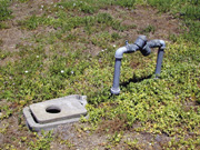 The term backflow means any unwanted flow of used or non-potable water or substance from any domestic, industrial or institutional piping system into the pure, potable water distribution system. The direction of flow under these conditions is in the reverse direction from that intended by the system and normally assumed by the owner of the system. Backflow may be caused by numerous specific conditions; but, basically the reverse pressure gradient may be due to either a loss of pressure in the supply main called backsiphonage, or by the flow from a customer's pressurized system through an unprotected cross-connection, which is called backpressure. Thus the term backflow covers both a backsiphonage condition and a backpressure condition. A reversal of flow in a distribution main--or in the customer's system--can be created by any change of system pressure wherein the pressure at the supply point becomes lower than the pressure at the point of use. When this happens in an unprotected situation the water at the point of use will be siphoned back into the system; thus, potentially polluting or contaminating the remainder of the customer's system. Types of Backflow Preventers An Air Gap is a physical separation of the supply pipe by at least two pipe diameters (never less than one inch) vertically above the overflow rim of the receiving vessel. In this case line pressure is lost. Therefore, a booster pump is usually needed downstream, unless the flow of the water by gravity is sufficient for the water use. With an air gap there is no direct connection between the supply main and the equipment. An air gap may be used to protect against a contaminant or a pollutant, and will protect against both backsiphonage and backpressure. An air gap is the only acceptable means of protecting against lethal hazards. The Atmospheric (non-pressure) Type Vacuum Breaker (AVB) is always placed downstream from all shut-off valves. Its air inlet valve closes when the water flows in the normal direction. But, as water ceases to flow the air inlet valve opens, thus interrupting the possible backsiphonage effect. If piping or a hose is attached to this assembly and run to a point of higher elevation, the backpressure will keep the air inlet valve closed because of the pressure created by the elevation of water. Hence, it would not provide the intended protection. The Pressure Vacuum Breaker (PVB) includes a check valve which is designed to close with the aid of a spring when flow stops. It also has an air inlet valve which is designed to open when the internal pressure is one psi above atmospheric pressure so that no non-potable liquid may be siphoned back into the potable water system. Being spring loaded it does not rely upon gravity as does the atmospheric vacuum breaker. This assembly includes resilient seated shut-off valves and testcocks. The Double Check Valve Assembly consists of two internally loaded, independently operating check valves together with tightly closing resilient seated shut-off valves upstream and downstream of the check valves. The DC may be used to protect against a pollutant only. However, this assembly is suitable for protection against either backsiphonage or backpressure. The Reduced Pressure Principle (RP) assembly consists of two internally loaded independently operating check valves and a mechanically independent, hydraulically dependent relief valve located between the check valves. This relief valve is designed to maintain a zone of reduced pressure between the two check valves at all times. This assembly is used for the protection of the potable water supply from either pollutants or contaminants and may be used to protect against either backsiphonage or backpressure. The Double Check Detector Assembly DCDA is composed of a line-sized double check valve assembly with a specific bypass meter and meter-sized double check valve assembly. The meter registers accurately for very low flow rates to detect any unauthorized use of water. This assembly is used when the protection of a double check valve assembly is required, yet where the added requirement of detecting any leakage or unauthorized use of water exists. The information contained within this article was reprinted courtesy of the University of Southern California's Foundation for Cross-Connection Control and Hydraulic Research. For more information about backflow prevention visit www.usc.edu/dept/fccchr/ or call (213) 740-2032.