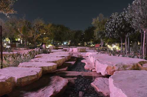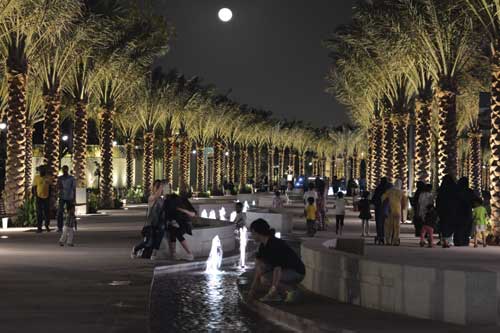 The revamped park is now home to numerous playgrounds and botanical gardens, some of which include plant species previously unused in Abu Dhabi public space. There is even a petting zoo, replete with goats, donkeys and camels that encourages education, interactivity and conservation. Given the cultural significance of water in the Middle East, it is natural that fountains play a fundamental role in the design of Mushrif Central Park. Fourteen water features positioned throughout the park are integral to the redesigned park's landscape architecture and the overall experience the space provides to the public. They are the focal point of the main east to west promenade that runs through Mushrif Central Park, and play a major role in way finding and exploration of the park's wider gardens and elegant spaces.