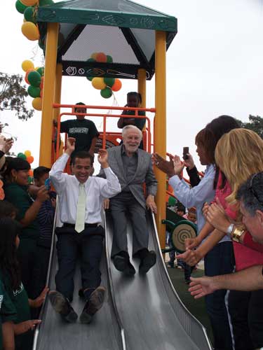 Mayor Villaraigosa, along with L.A. city staff and Anne and Kirk Douglas, joined GameTime, PlayCore and other sponsors in a heartfelt ceremony held June 30 to dedicate and open the playground. PlayCore CEO Bob Farnsworth accepted a citation for the corporation's work with urban communities. He told the crowd, "We are honored to have such a great job, bringing play to children and communities just like yours. We hope that you love your new playground as much as we love bringing it to you."
