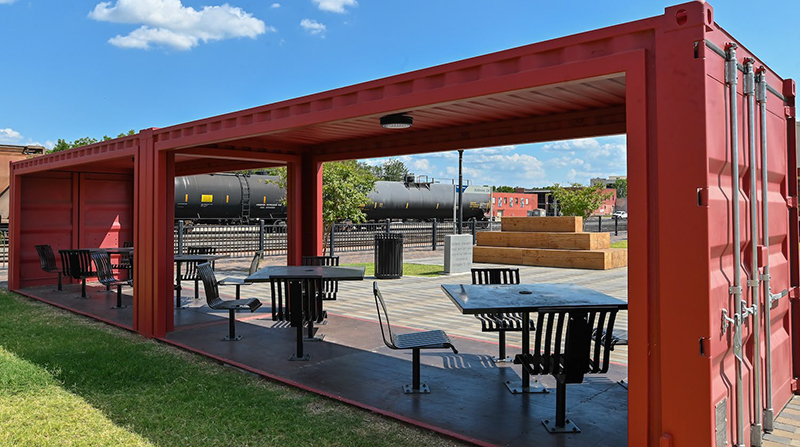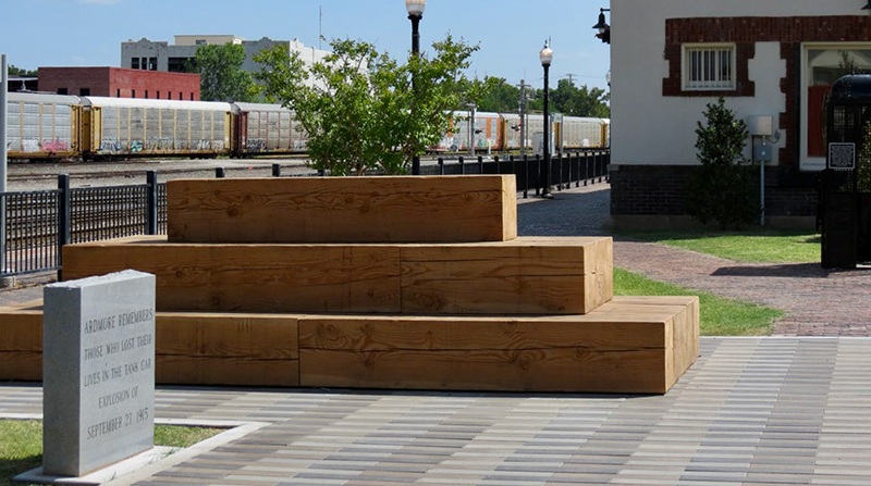 The Streetscapes Issue of Landscape Architect and Specifier News saw many firms submit their projects for feature consideration. Ardmore Depot Park & Streetscape is one of several great projects we are excited to showcase on LandscapeArchitect.com.The project had many purposes, the first being to create a gathering place in the heart of the historic downtown that provides an outdoor public open space for recreation and an entertainment venue. It was also to commemorate the history of the city by focusing on the connection between the railroad and historic events and work with local artists to showcase the area's strong art history. Another goal was to revitalize the historic downtown streetscape and create connectivity between the west and east sides of the railroad tracks as well as provide greater accessibility along the sidewalks and from parking stalls, installing back in parking, and adding a "road diet" median, a round-about, and wide crosswalks and to, finally, enhance stormwater infiltration.