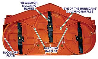 True mulching mowers, i.e. designed to compost, have doughnut-shaped deck housings with various baffles and a specially shaped blades to ensure clippings are cut several times. Some blades have jagged teeth, some have multiple cutting edges. St. Dennis says traditional mulching mowers manage clippings efficiently under the deck, while recycler decks use kickers and blades to lift grass and keep it suspended for repeated cutting.