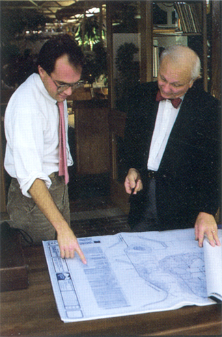 ?EUR??,,????'??How ya doin’ guy, good to see ya” filled the lobby as the 59-year-old L.A. with the 18-year-old stride appeared around the corner. I stood to greet the man many considered the most active Landscape Architect in the past 30 years, when he grabbed my hand in the traditional handshake and quickly turned it into the more modern ‘soul shake.’ Letting go and pulling at the same time he led me through the open workshop, back to a colored glass semi-private office. Shade trees kept the sun at bay without blocking a quiet view of the greenbelted corporate plaza.
