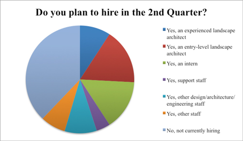 According to the 2015 1st Quarter American Society of Landscape Architects (ASLA) business survey https://tinyurl.com/l2t9rd9, leaders of landscape architecture firms report significantly higher levels of billable hours, hiring and inquiries for new work, "suggesting an industry-wide spring thaw has arrived." The first-quarter survey was fielded April 17 to April 30, 2015, with 191 primary firm contacts responding. The majority of firms (82.02 percent) reported stable to significantly higher billable hours during the first quarter, a jump from the 74.67 percent from the previous quarter. Similarly, 85.34 percent reported stable to significantly higher inquiries for new work, a notable rise from 76.75 percent in the fourth quarter of 2014. Year to year, 80.52 percent of firms reported that billable hours were stable to significantly higher, a number virtually unchanged from the first quarter of 2014 (80.17 percent). Additionally, inquiries for new work (83.24 percent) dipped slightly from the first quarter of 2014 (84.64 percent). The optimism felt by firms seems to be translating into future jobs, according to the survey. Of firms with two or more employees, 61.54 percent said they planned to hire during the second quarter of 2015, a notable rise from the previous quarter (50.63 percent). Some 55.26 percent of firms with 5-9 employees will be hiring landscape architects, both experienced and entry-level. "Firms have good reason to be upbeat about their economic prospects," said Nancy Somerville, CEO and executive vp of ASLA. "Many are reporting more opportunities for projects as well as strong expectations to hire. We're confident that these conditions will persist throughout the year." The survey also revisited questions from a third quarter 2010 Business Quarterly survey about why clients choose sustainable design techniques. The top reasons remained virtually unchanged. They include meeting government requirements (54.79 percent), saving money on utility or maintenance costs (40.96 percent), reducing environmental harm (39.36 percent) and adding marketing cachet (31.91 percent). In the 2010 survey, the top reasons were listed as meeting government requirements (50.4 percent), saving money on utility or maintenance costs (43.1 percent), adding marketing cachet (38.7 percent) and reducing environmental harm (38.1 percent).