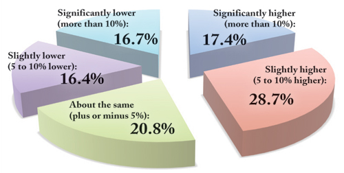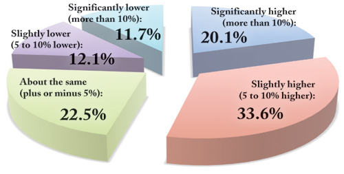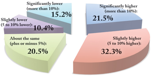 Year to year, more than three-quarters of firms indicated stable or positive Q1 2012 growth in new business inquiries (76.2 percent), a number nearly identical to the Q1 2011 figure (76.6 percent).